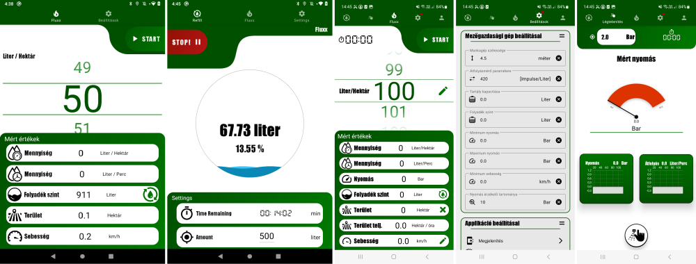 The application rate depends on the tractor speed and is regulated by a PWM controlled speed of the pump. Measurement of the tractor's speed is based on GPS datas. Regulation is highly responsive and precise.